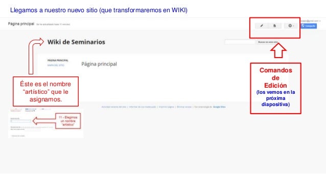 - 11. Llegamos a nuestro nuevo sitio (que transformaremos en WIKI) Éste es el nombre “artístico” que le asignamos. Comandos de Edición (los vemos en la próxima diapositiva)
