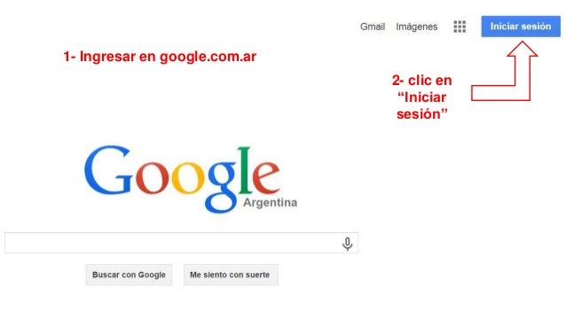 - 2. 1- Ingresar en google.com.ar 2- clic en “Iniciar sesión”