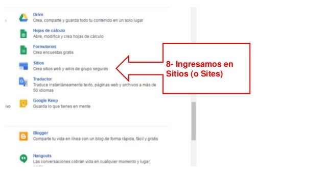 - 7. 8- Ingresamos en Sitios (o Sites)